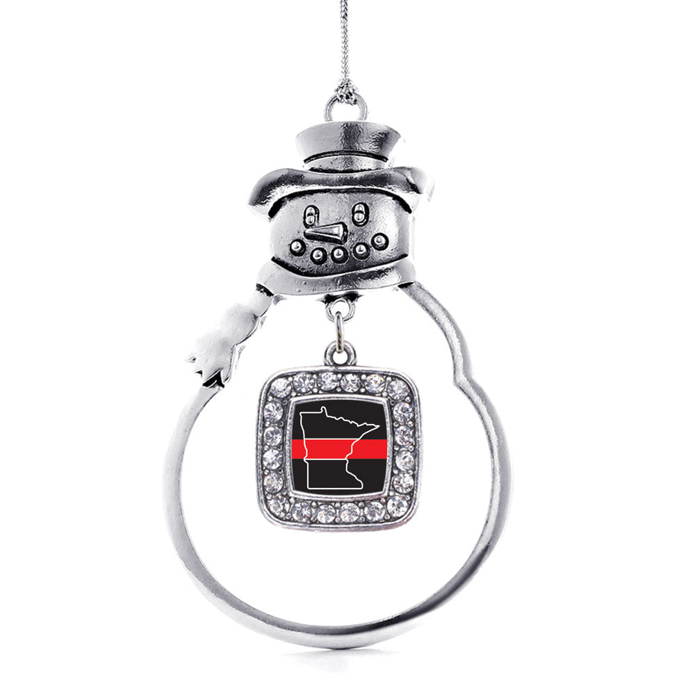 Minnesota Thin Red Line Square Charm Christmas / Holiday Ornament