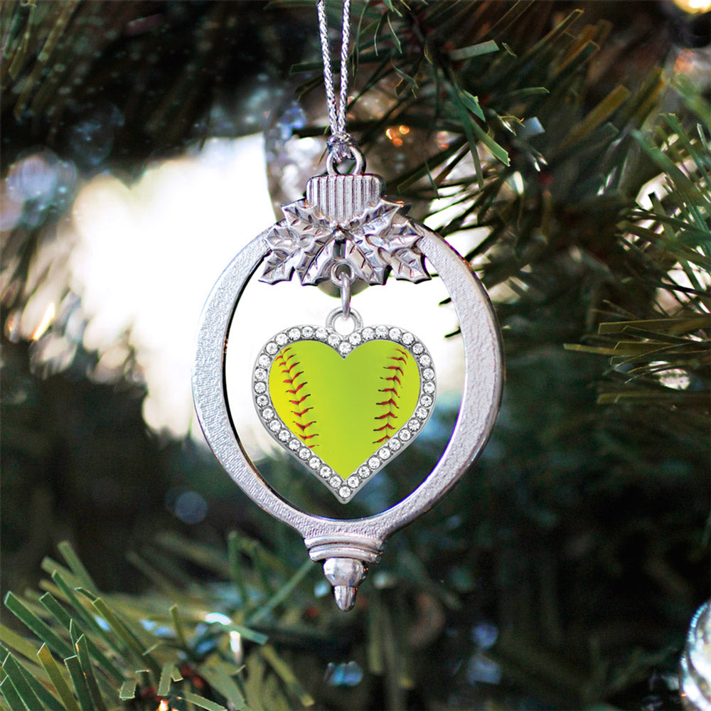 Softball Open Heart Charm Christmas / Holiday Ornament